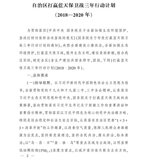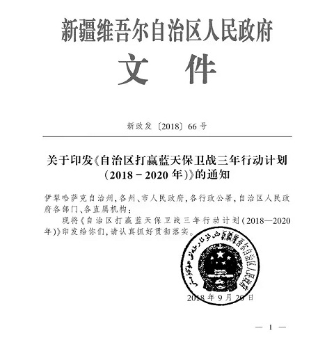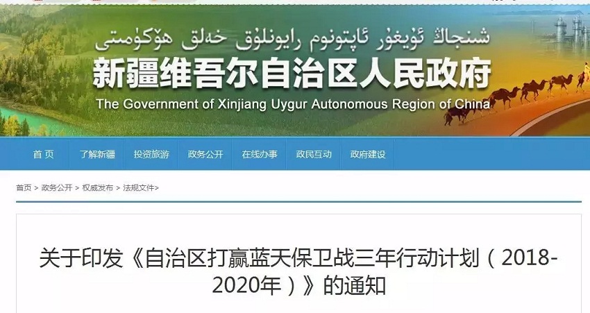 新疆維吾爾自治區人民政府發布了關于印發《自治區打贏藍天保衛戰三年行動計劃(2018-2020年)》的通知