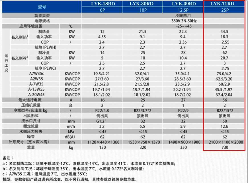 機組型號:超低溫空氣源熱泵LYK-71RD(25P超低溫空氣源熱泵機組)