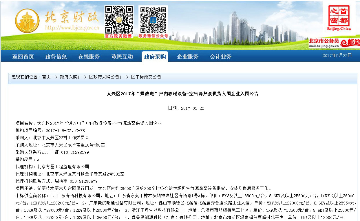 今日,營(yíng)銷前線又傳喜訊,鑫魯禹能源科技入圍北京市大興區(qū)農(nóng)村“煤改電”項(xiàng)目。目前為止,鑫魯禹已入圍大興區(qū)、順義區(qū)的“煤改電”項(xiàng)目。自年初,鑫魯禹就開(kāi)始關(guān)注北京“煤改電”市場(chǎng),在政策利好的形勢(shì)下,我們牢牢把握機(jī)遇,5月8日入圍順義區(qū)“煤改電”項(xiàng)目,5月22日入圍大興區(qū)“煤改電”項(xiàng)目,這是對(duì)鑫魯禹在空源熱泵行業(yè)地位的肯定。