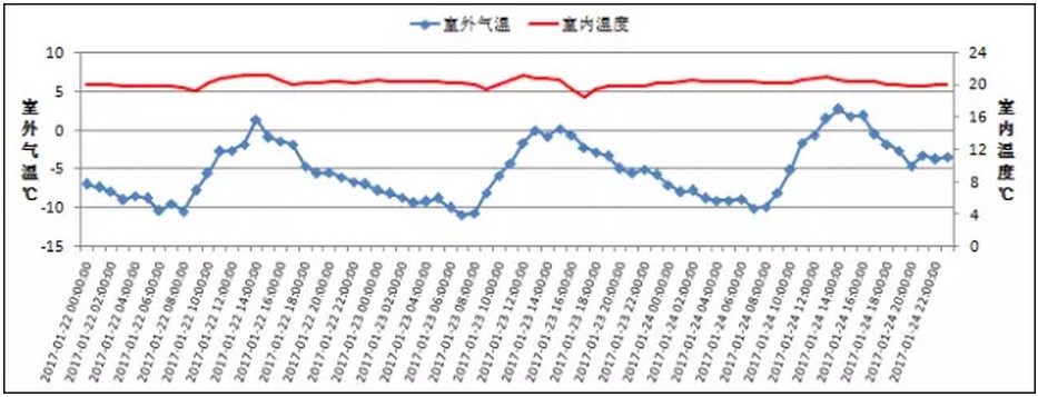 在北京整個采暖季,即便最低室外氣溫達-12℃,室內溫度維持18~21℃;