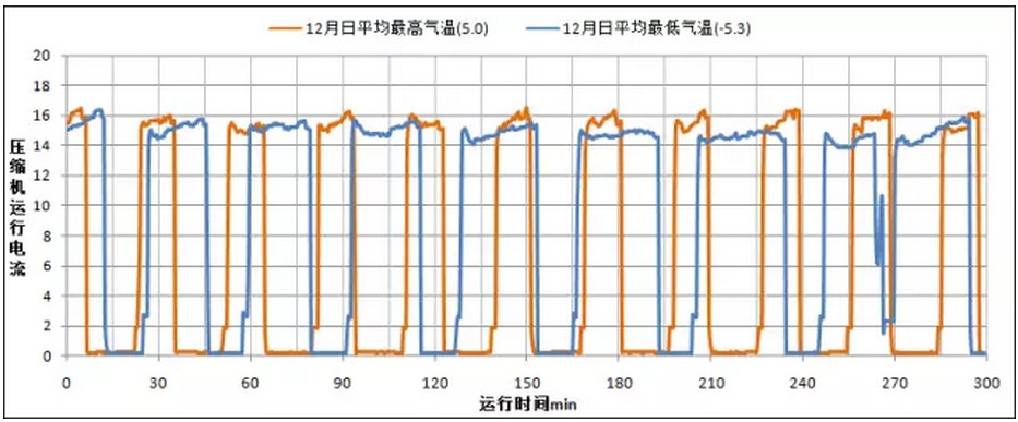 同時從Fig.9看出氣溫低的階段,機組的開機時間(制熱時間)增加66.7%,停機間隔減小,【熱泵市場 水印】總的開停機循環時間基本相同,反映低環境溫度下機組制熱時間,耗費電量將會大幅增加。