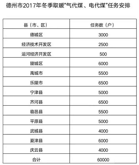 德州是中國太陽城、中國功能糖城、中國優(yōu)秀旅游城市以及國家交通運輸主樞紐城市,近年來不斷在改善生態(tài)環(huán)境、治理大氣污染工作上取得實質性進展。德州作為山東傳輸通道重點城市之一,在2017年民用煤改6萬戶的基礎上再度增加數(shù)量預計8-10萬戶,預計2018年綜合取暖改造將達到15萬戶(單位)以上。