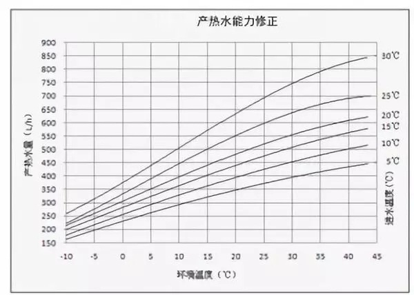 學術交流中心的兩臺空氣源熱泵熱水器產水量修正曲線如下圖: