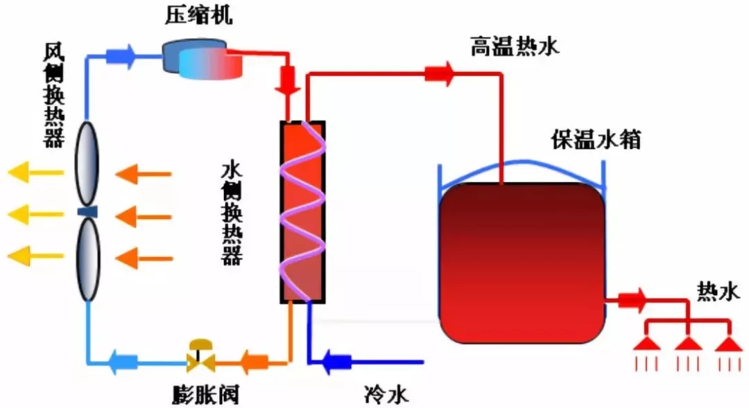 機組自帶微電腦智控系統,并配置線控式手操器,最遠距離可可根據回水溫度、進水溫度、水箱溫度控制機組壓縮機的啟停,來達到節能的目的。另外,熱泵機組自帶低水溫保護、缺水保護、高低壓保護等功能。當熱泵主機缺水運行時,會開啟水流故障報警,關閉壓縮機及水泵的運行。
