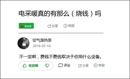 這是某論壇里一個關(guān)注度非常高的話題。在討論區(qū),有人這么回答:“不一定啊,費(fèi)錢不費(fèi)錢取決于你用什么設(shè)備。用費(fèi)電的設(shè)備當(dāng)然費(fèi)錢,比燒煤還貴。用節(jié)能省電的設(shè)備當(dāng)然不費(fèi)錢。一方面在于熱轉(zhuǎn)化率,另一方面在于保溫。所以選擇比較好的設(shè)備和做好房屋保溫是很重要的”。