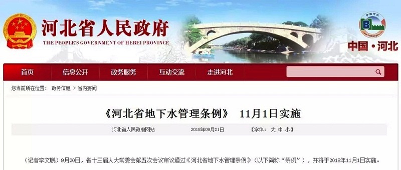 9月20日,《河北省地下水管理?xiàng)l例》在河北省第十三屆人民代表大會常務(wù)委員會第五次會議上獲高票通過,將于2018年11月1日實(shí)施。《條例》規(guī)定: