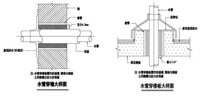 管道穿墻、穿樓板時安裝好護套,打發(fā)泡劑填充。
