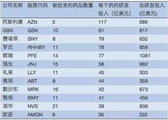 福布斯公布的全球主要跨國藥企近年研發(fā)支出