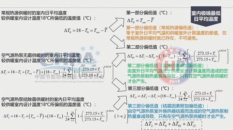 那么,怎么由18℃降到13℃?原因是在統計規定室外計算溫度的時候,已經有了不保證5天的室內空氣質量。在這樣的情況下,它的偏差就比較大了。其中,室內日平均溫度不保證18℃的條件是熱泵無霜制熱量在經過結除霜修正后的實際制熱量衰減至低于維持室內溫度18℃的建筑需熱量。