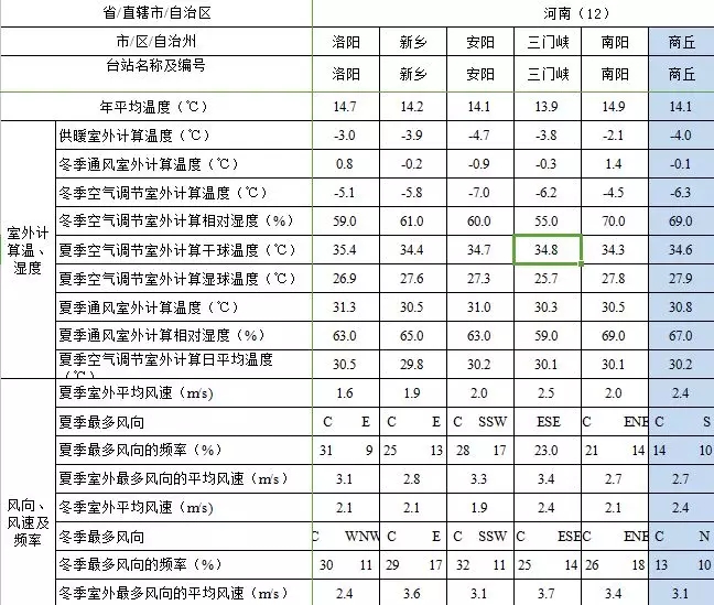 表1:長期逗留區域空氣調節室內計算參數
