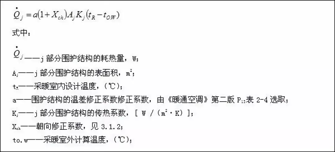 熱負荷計算包括圍護結構的耗熱量(包括朝向修正)和由門窗縫隙滲入室內的冷空氣耗熱量以及冷風侵入耗熱量,其中: