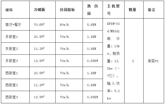 客戶為小區別墅,一共兩層半,其中第三層主要用于儲物及隔熱,不做采暖,廚房衛生間不做采暖,主要居住1層和2層,三世同堂,有老人和孩子,屬于抵抗力相對較弱群體,建議采暖用地暖,制冷用風盤,制冷控制在26℃左右,采暖控制在18℃左右。
