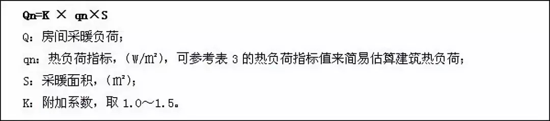 各房間計算熱負荷可采用(天正、鴻業、浩辰暖通軟件)進行計算。其中計算熱負荷為20.9KW。熱負荷也可以按該計算方法估算: