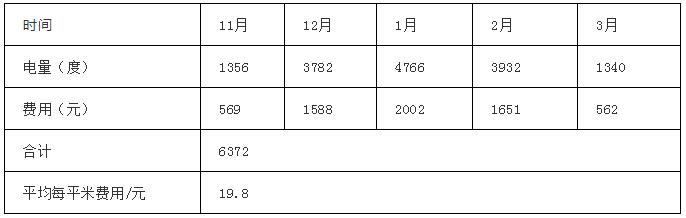 通過一個冬天檢測,室內采暖溫度設置恒溫20℃左右采暖,運行數據如表4。據客戶反饋,一個采暖季下來才六千多元,平均一個月僅1200多元,節能明顯?蛻舯硎荆骸翱諝庠礋岜貌膳Ч芎,相比燒煤舒服多了,省去了很多麻煩,運行費用也不高!