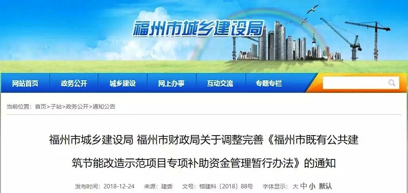 福州市城鄉建設局 福州市財政局關于調整完善《福州市既有公共建筑節能改造示范項目專項補助資金管理暫行辦法》的通知
